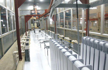 珂暖铸铝散热器不同于普通的铝制散热器。铸铝散热器通过选用优质防腐的铝材料,在800℃的熔化状态下,由2000吨级全自动压铸机整体压铸成型。然后经过去毛刺、组装、表面除油、清洗、电泳氟化锆、环氧树脂粉末喷涂等工艺,最后在180℃的烘干炉中烘干。优异的制造工艺确保了散热器表面的光滑,耐磨不变色等特点。另外,由于铝表面能形成致密的氧化膜,更耐用。